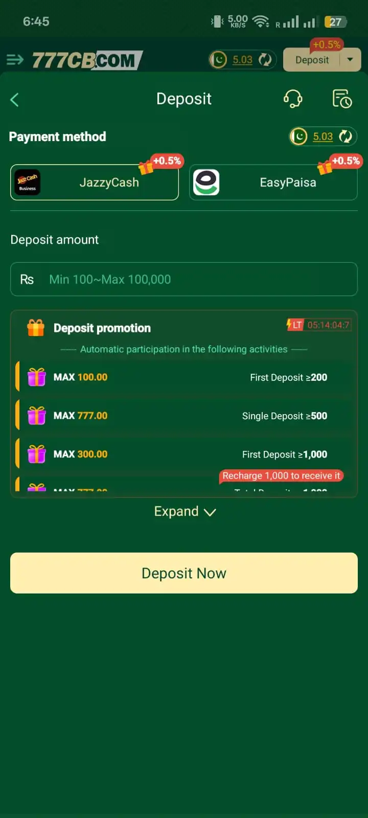 How to deposit and withdraw money in the 777CB Game?