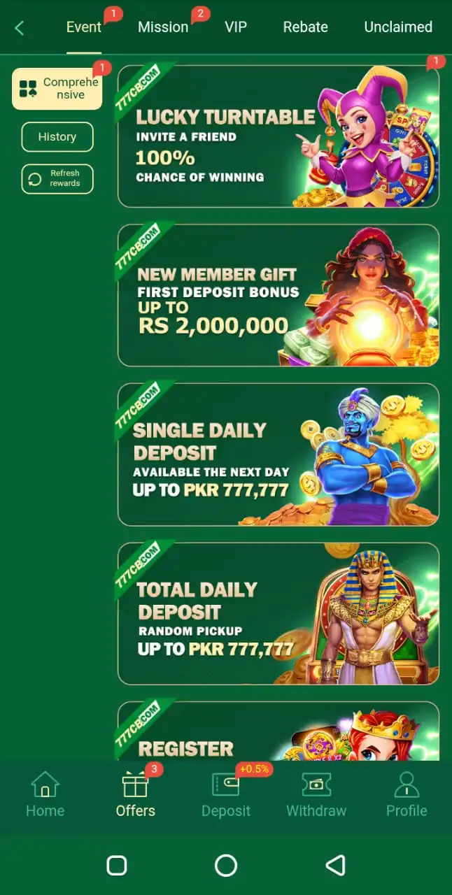- Deposit Bonus: Get extra rewards when you add money to your account.